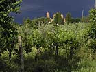 It is surrounded by olive groves and vineyards. A nearby convent