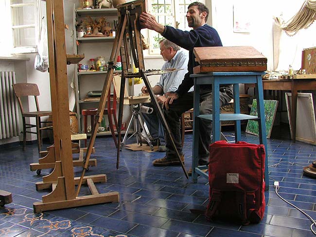 David Estes and Larry Rigby painting in the studio on last year's trip